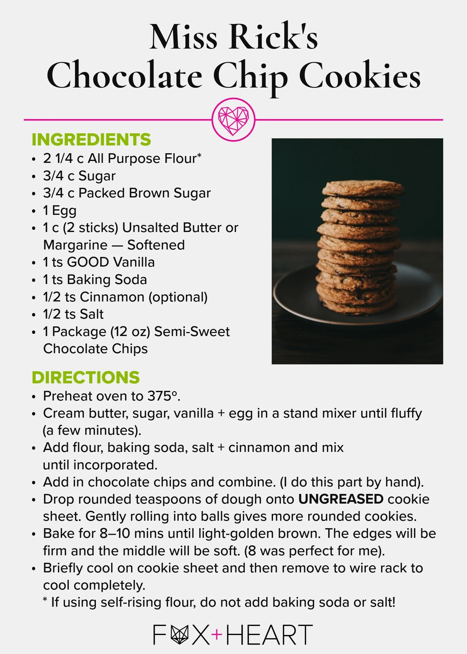 There’s just something about a homemade chocolate chip cookie. I've combined my trial-and-errors recipe, compared it to Betty Crocker’s and created the official FOX+HEART Feel Good Kitchen Chocolate Chip Cookie. Good vanilla and a dash of cinnamon make these made-from-scratch cookies chewy/gooey, slightly crunchy + perfectly sweet.