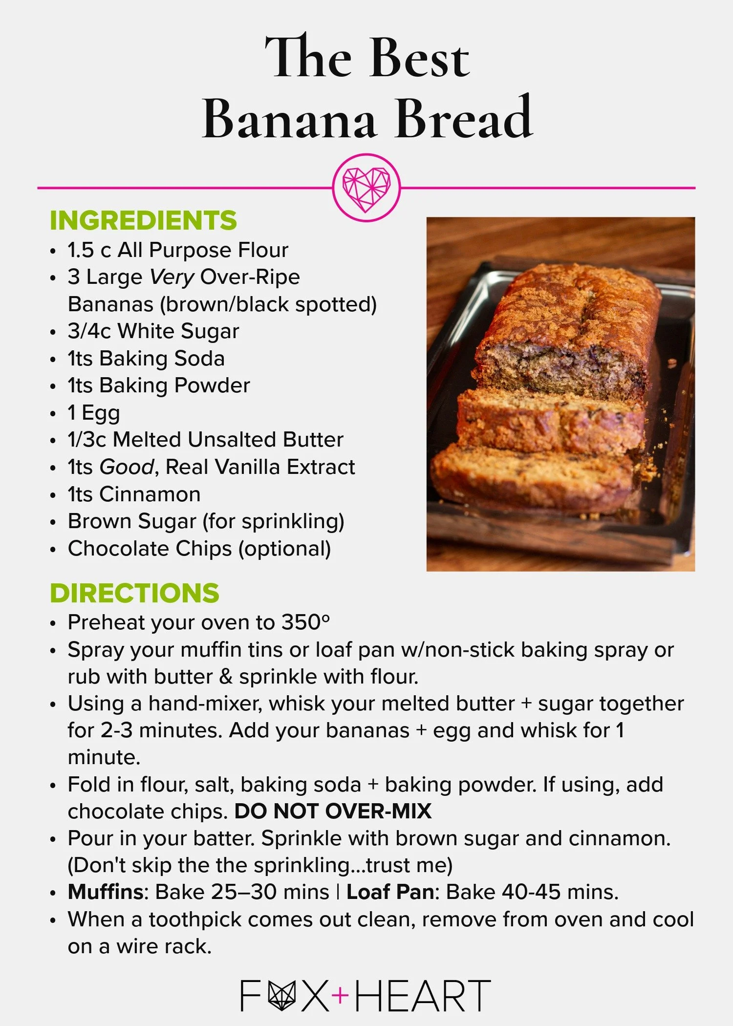 My tried & true Banana Bread recipe. At one point, I had to tell my grandma to stop giving me bananas because I was tired of making it. 😂 It’s THAT good.